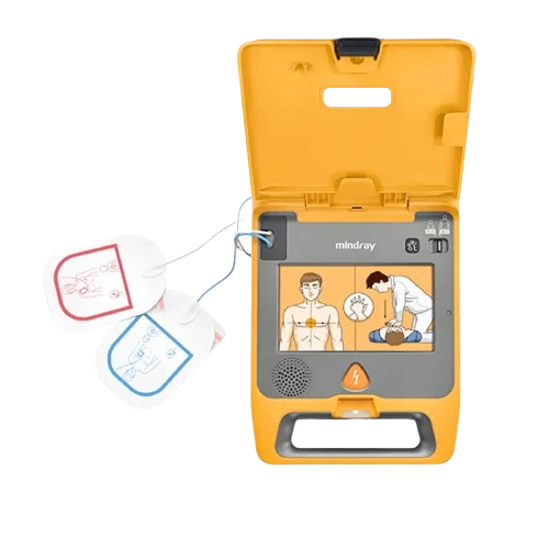 Der BeneHeart C1A Defibrillator von Mindray (Halbautomatik) ist ein halbautomatisierter externer Defibrillator, der sowohl für den Gebrauch durch erfahrenes Personal als auch speziell für Laien konzipiert ist. Dabei unterstützt der Defibrillator besonders mit seiner ResQNavi-Technologie: Basierend auf Benutzerverhalten und psychologischen Forschungsergebnissen, wird der Status der Rettungskräfte ermittelt und unterstützt sie mithilfe einer Rettungsnavigation während des gesamten Wiederbelebungprozesses. Die Navigation zeigt anhand von Piktogrammen die Druckpunkte für die Herzmassage an und leitet den Ersthelfer mit klaren Sprachansagen durch die Herz-Lungen-Wiederbelebung. Der BeneHeart C1A Defibrillator ist dabei in der Lage, anhand der Schnelligkeit der Umsetzung der Schritte zu ermitteln, ob der Ersthelfer erfahren oder ungeübt ist. Anhand dieser Erkenntnis spielt der Defibrillator die Ansagen für Ungeübte detaillierter ab, als für Geschulte.