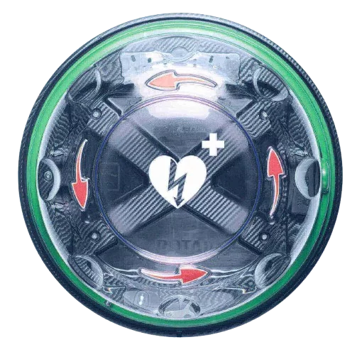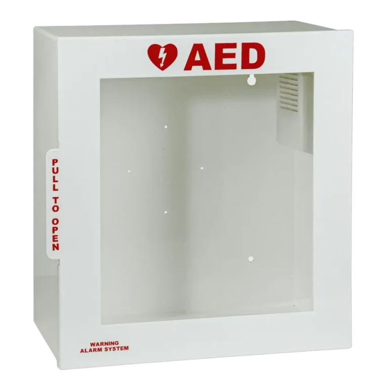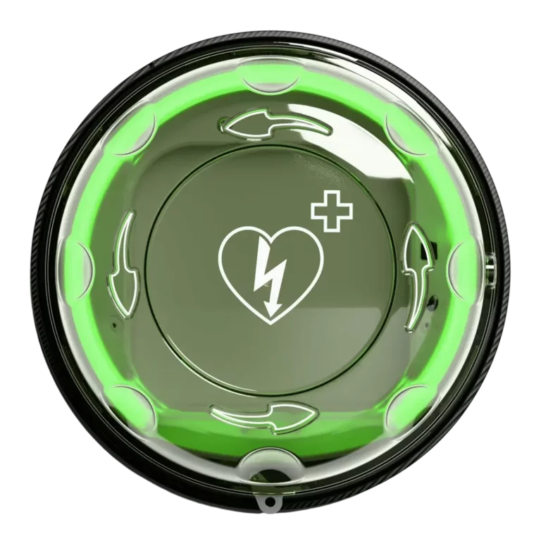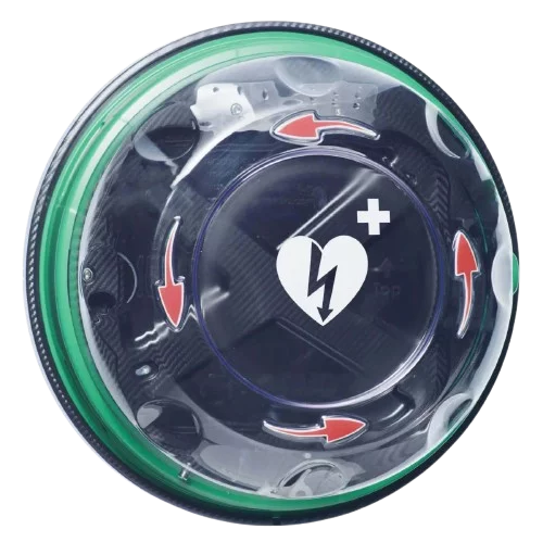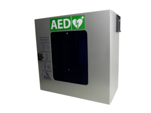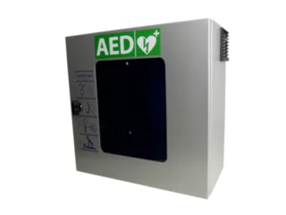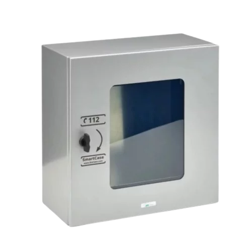 Das Gehäuse ist aus rostfreiem Stahl, was eine Beschädigung des Defibrillators verhindert. Die IP- Schutzklasse (IP54) schützt den AED vor Wasser und Staub. Dies bedeutet, dass der AED sicher im Freien aufbewahrt werden kann.